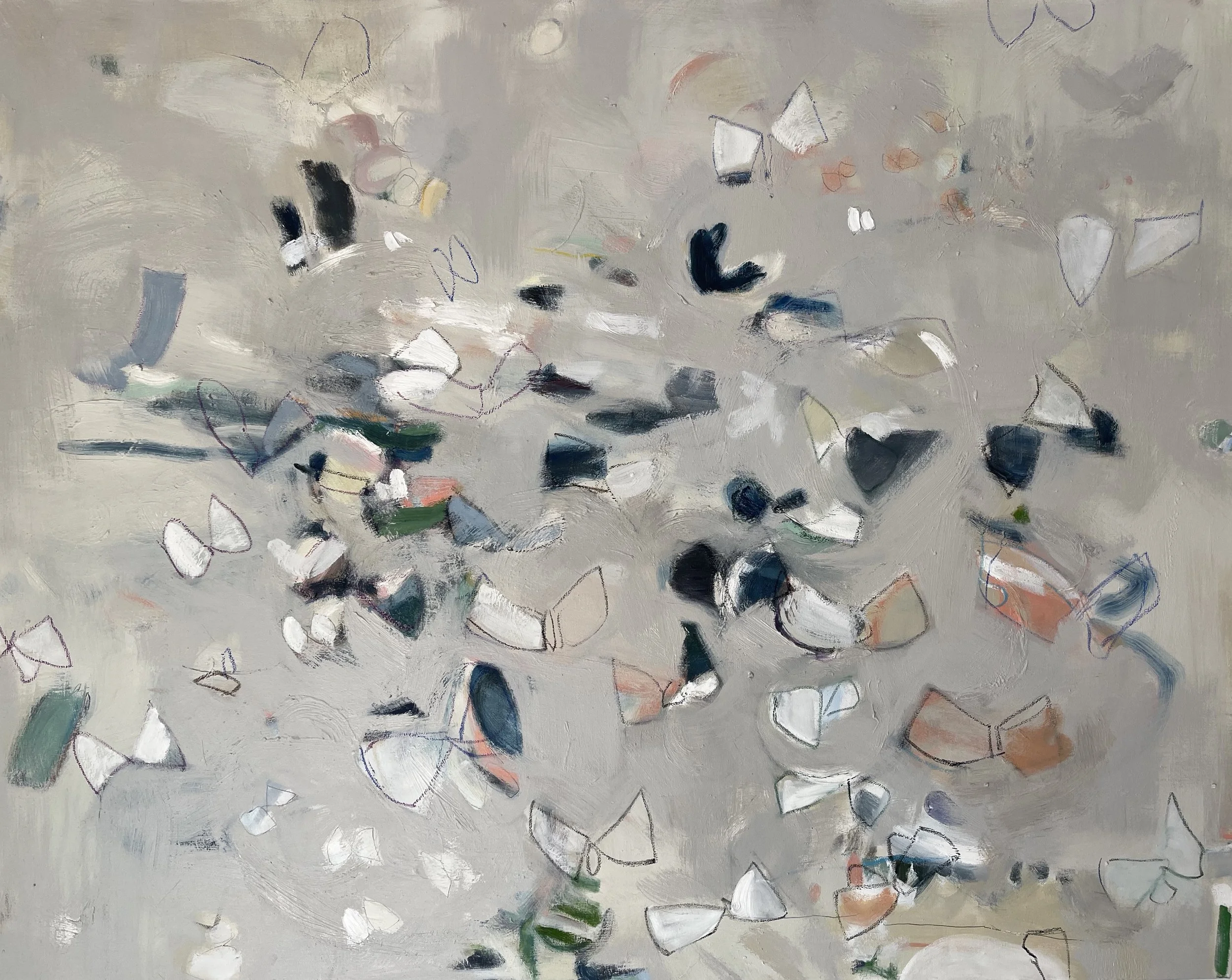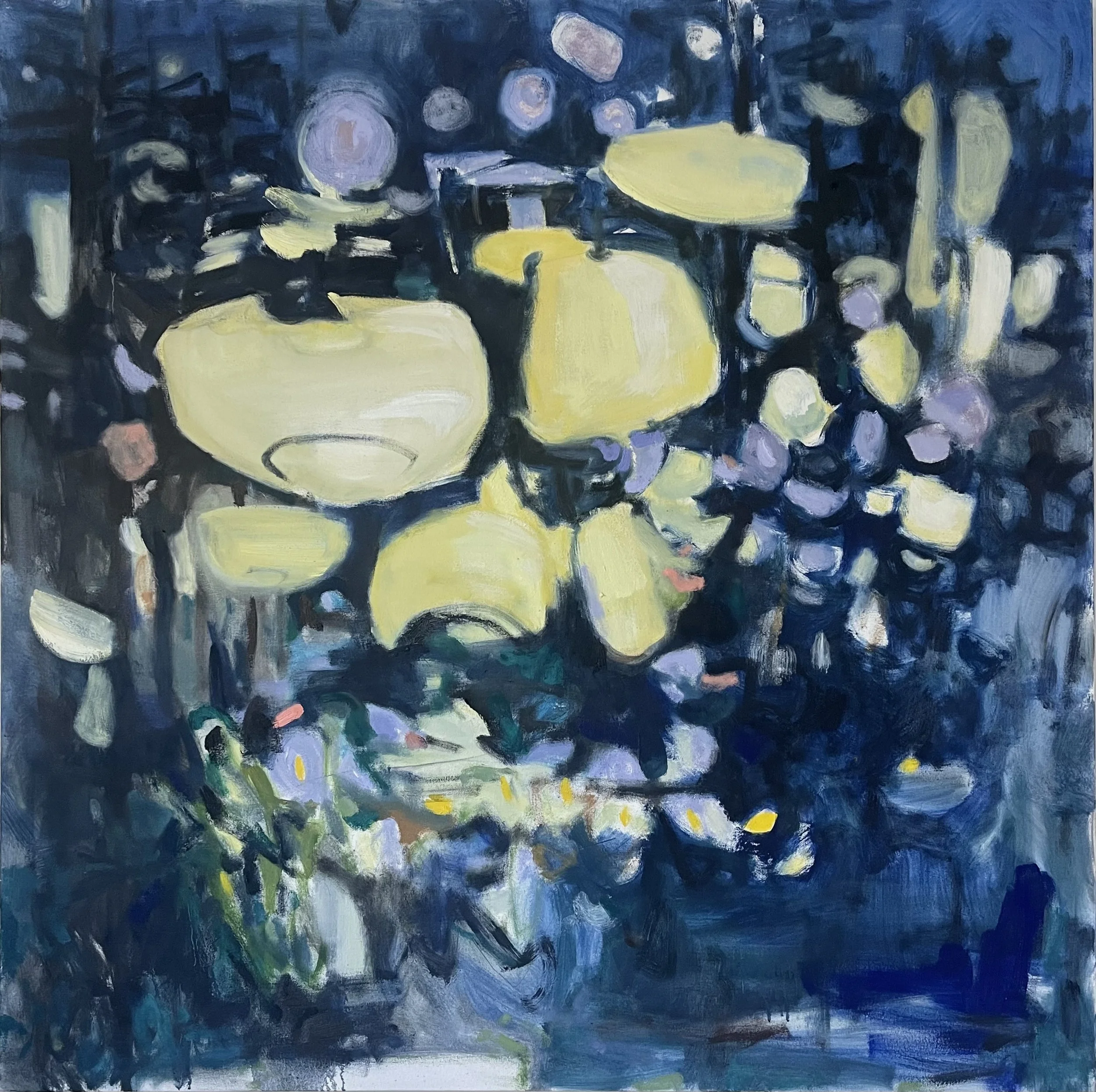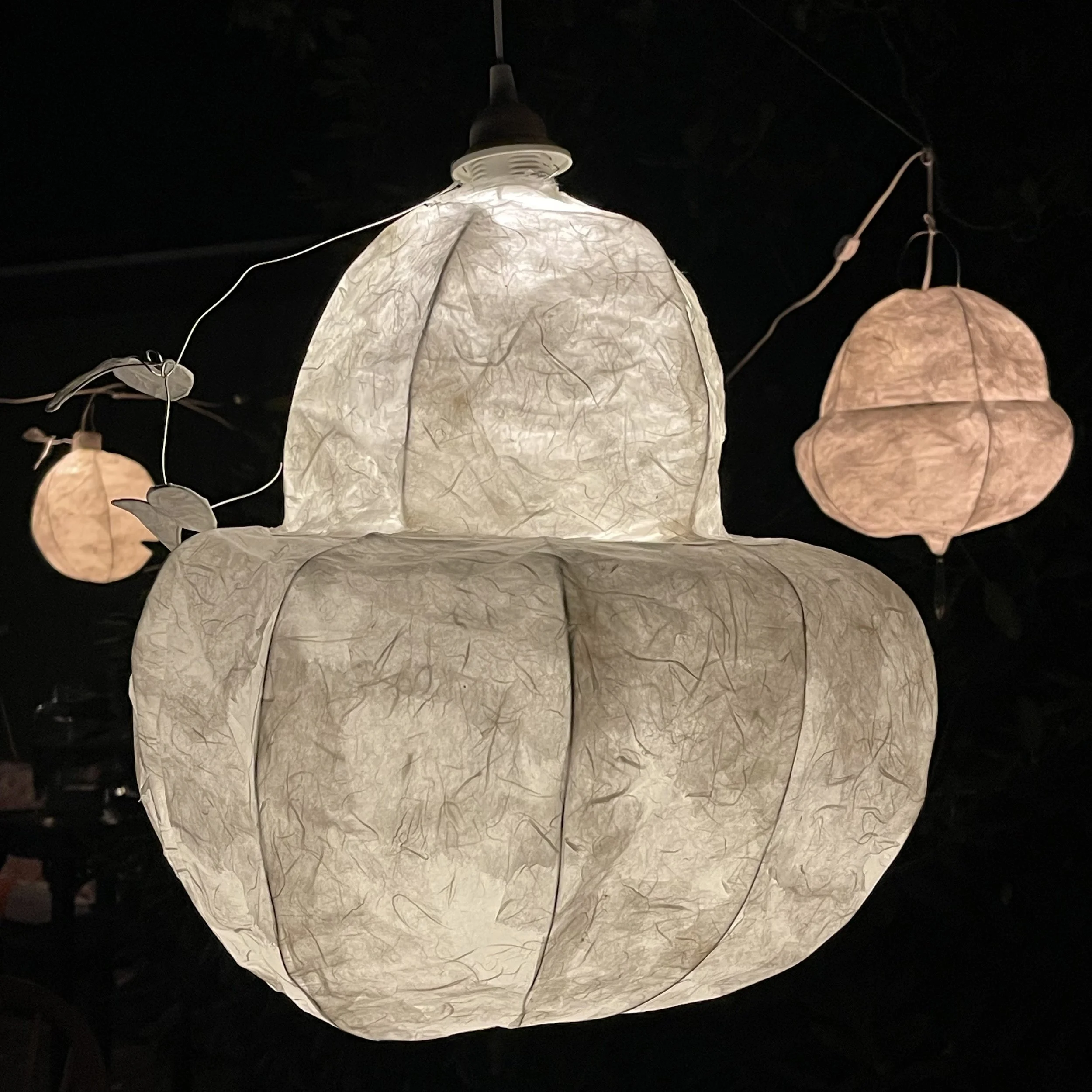 Here, as we look in and up simultaneously, the divisions between realities dissolve. The moth ascends to the light and then becomes the light. 2d paintings expand into 3d luminaries, which inspire more paintings in which we celebrate our infinite possibilities and commingle with sprites and elementals.